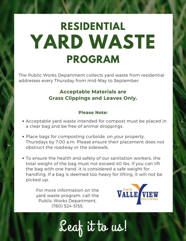 View Larger Image Residential Yard Waste Program Karen Roth2025-06-05T07:28:24-06:00June 5, 2025|NEWS| Share This Story FacebookXRedditLinkedInWhatsAppTumblrPinterestVkXingEmail